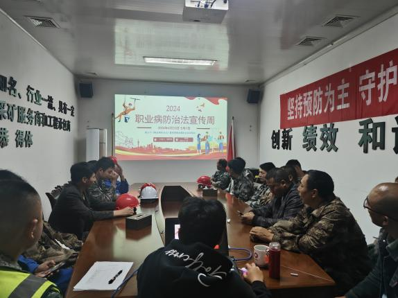 為迎合2024年“堅持守護為主,守護職業(yè)健康”職業(yè)健康防治宣傳周,2024年4月25日19:30,昭通礦利用生產(chǎn)間隙對員工進行了關(guān)于職業(yè)健康的安全教育培訓(xùn)。