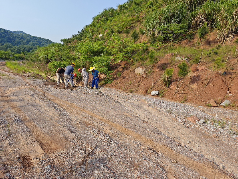 三是在清理排土場(chǎng)截水溝時(shí),經(jīng)營礦長身先士卒,生產(chǎn)管理員、勤雜工等一同協(xié)助,共同使用鐮刀沿截水溝一路清理雜草,直至污水處理池。
