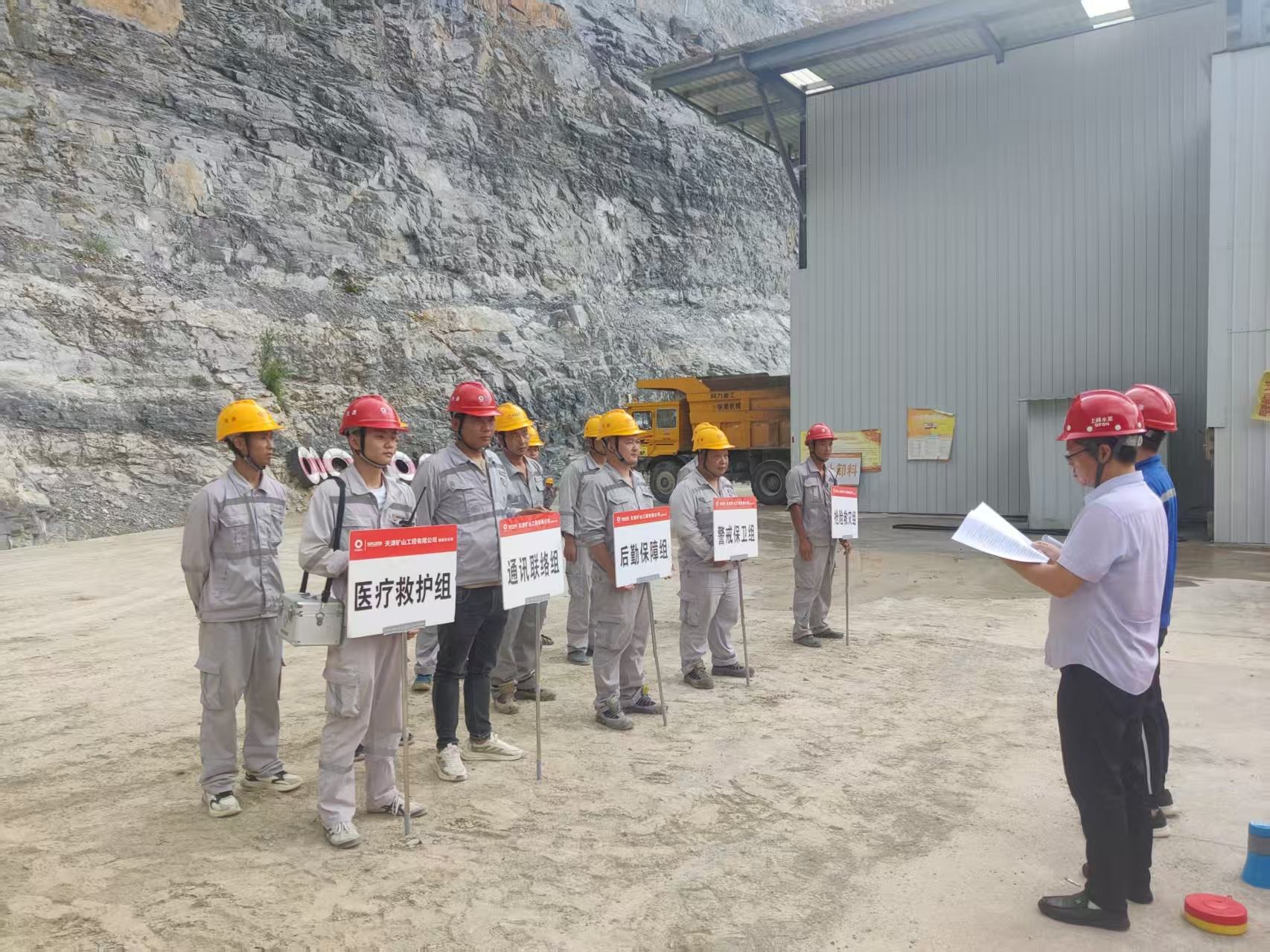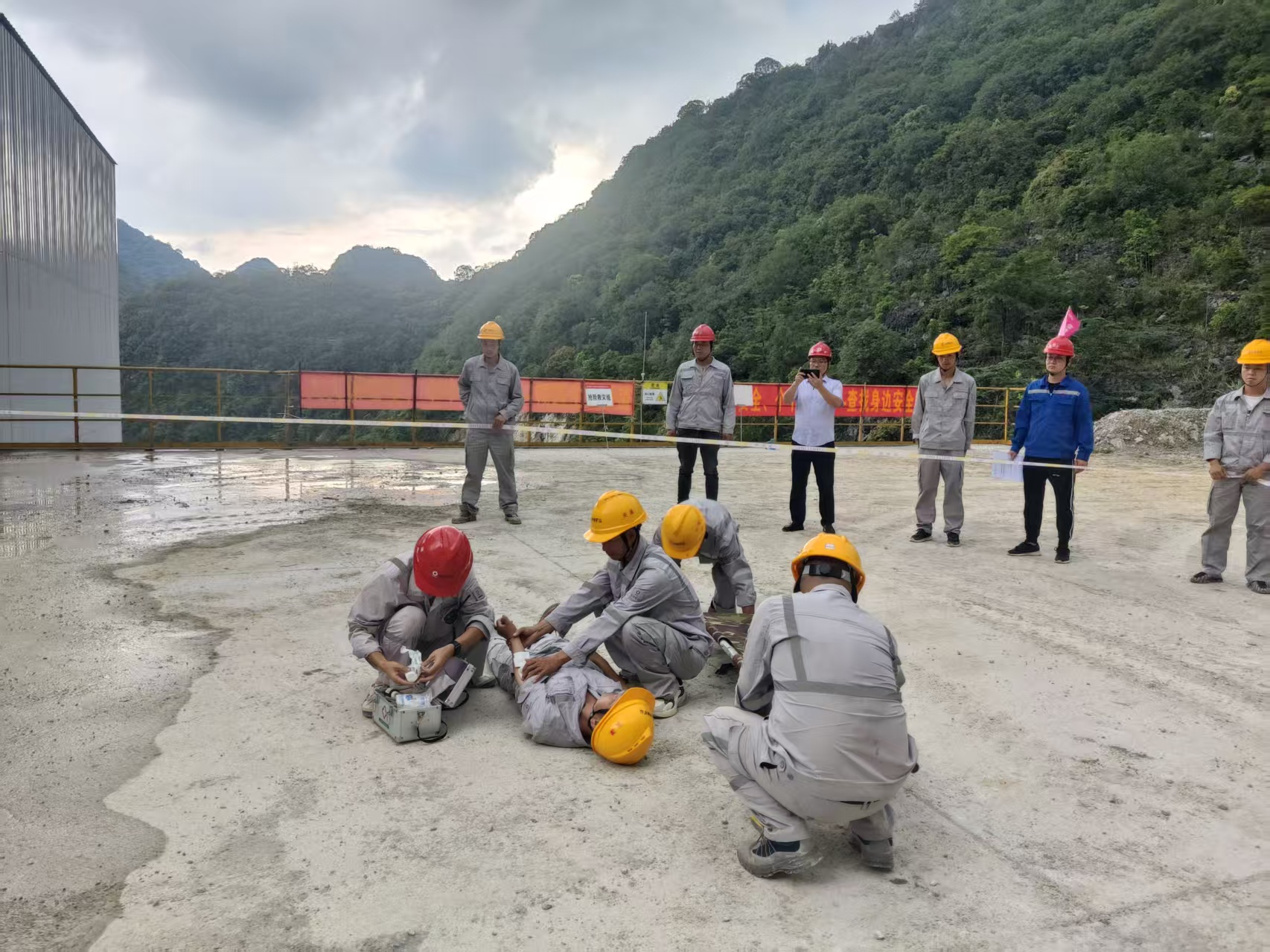 開展機械傷害事故專項應急演練,模擬員工被礦車碰撞導致手部受傷,演練過程中各演練小組迅速抵達現(xiàn)場,分工明確迅速投入搶險,在險情面前臨危不亂,有序開展現(xiàn)場警戒、安全疏散、傷員救護。