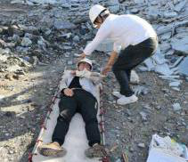 利用擔架將傷員送到安全區(qū)