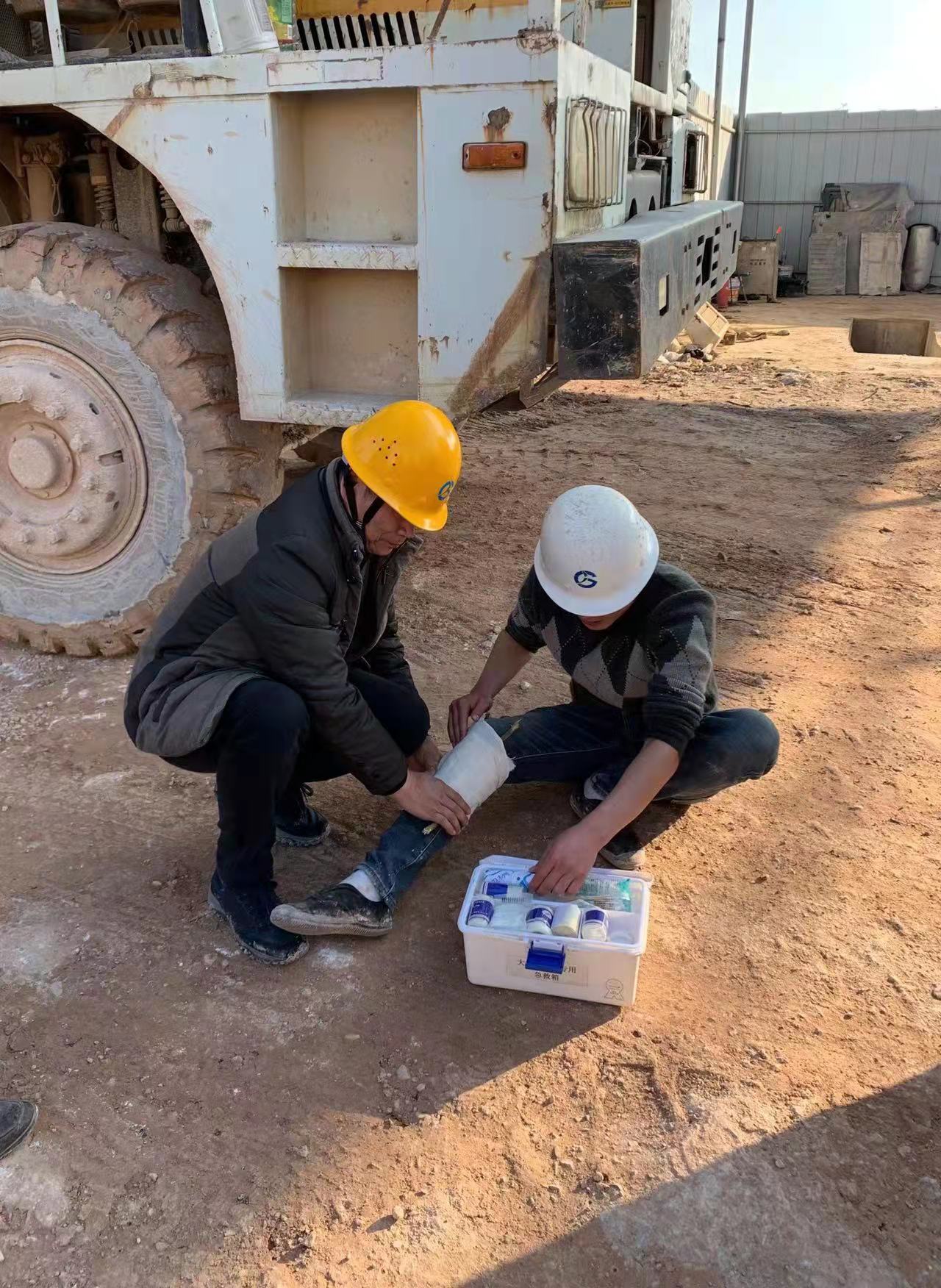 演練開始前對全體職工進行了組織動員,明確了參演者各自職責,職工對演練的目的性和重要性都有了明確認識,進一步提高了職工參演積極性。此次演練的場景為一名員工在礦山生產(chǎn)作業(yè)時遭受車輛將腿部壓傷。演練開始后,大家各施其職,演練程序穩(wěn)步推進并按計劃圓滿完成了本次演練。